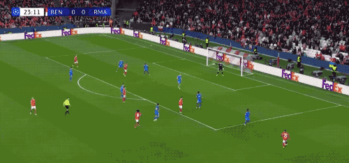 上半場的后半段,皇馬開啟了狂轟濫炸模式,本菲卡逐漸陷入被動,門前險象環(huán)生,切魯賓成為場上最忙碌的球員。