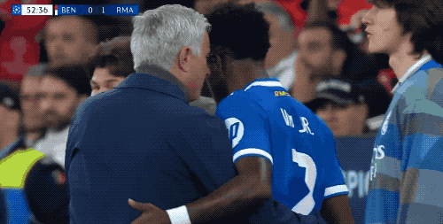 維尼修斯指責(zé)普雷斯蒂亞尼有歧視性的語言,向裁判投訴,裁判向維尼修斯出示黃牌。維尼修斯找普雷斯蒂亞尼算賬,甚至徑直走到場邊,穆里尼奧一把將他抱住,兩人有著長時間的交流。