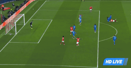 第23分鐘,奧瑟斯禁區(qū)外的重炮轟門直奔死角,庫爾圖瓦迅速倒地,完成精彩撲救。