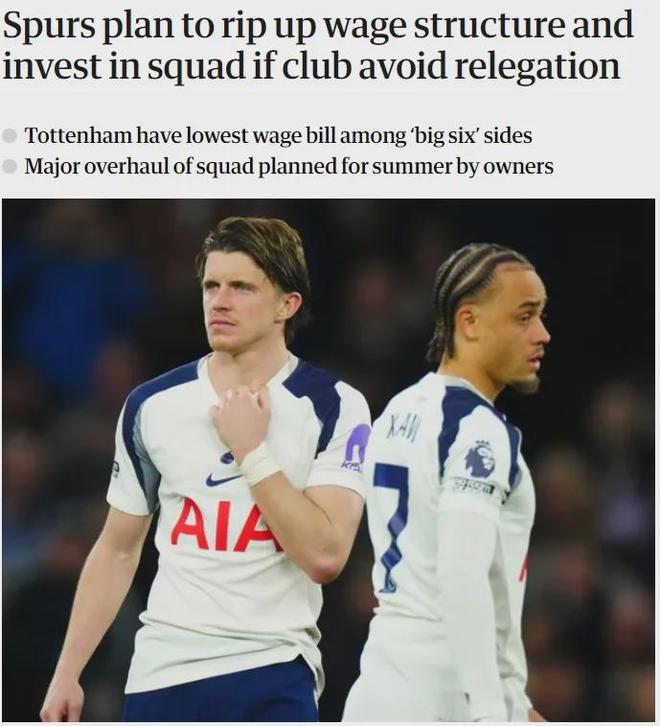 衛(wèi)報(bào)記者M(jìn)H消息,熱刺老板準(zhǔn)備打破俱樂(lè)部僵化的薪資結(jié)構(gòu),假如本賽季能避免降級(jí),那么他們將在夏天來(lái)臨之前付諸行動(dòng)。