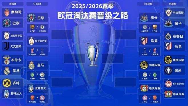 至此,本賽季歐冠16強(qiáng)全部產(chǎn)生,以聯(lián)賽論:英超6隊,西甲3隊、德甲2隊、意甲1隊、法甲1隊、葡超1隊、土超1隊、挪超1隊。